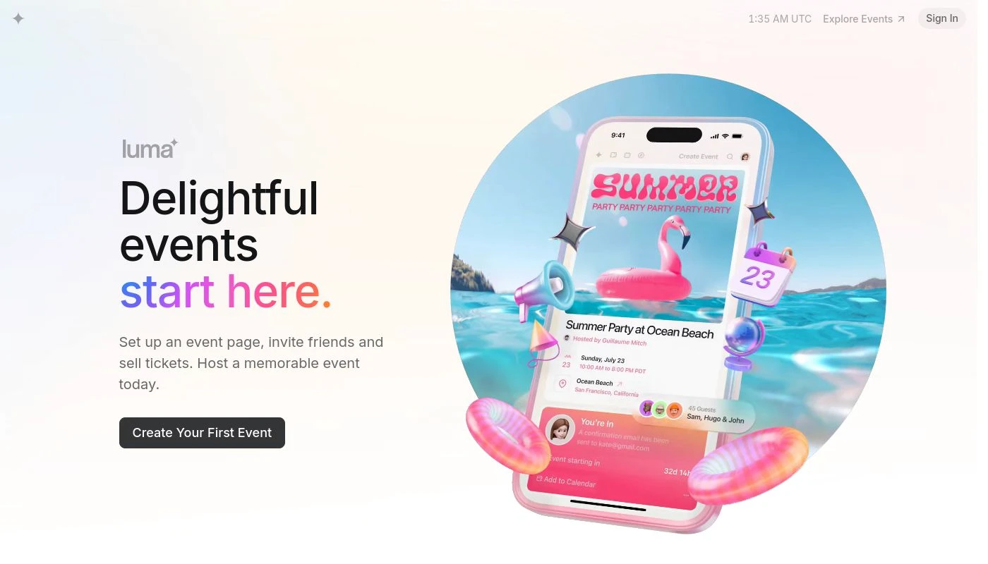 Seamless Event Page Creation: Luma makes it incredibly easy to set up an event page that looks professional and inviting. You can customize it to match the theme and vibe of your event, ensuring a delightful experience for your attendees.